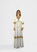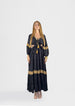Features front and back cutouts, long sleeves, and tasseled tie-up detail at the neckline. A statement piece with bohemian charm and effortless elegance.